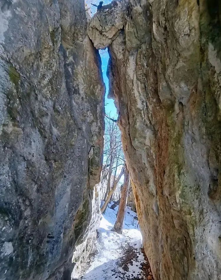 距窟窿神大约1200米左右。位于一处陡峭的大石崖上旁。整体呈人字形状,大约20米宽的两个大石壁中间上方夹一块石头,置身两石之间,抬头可观赏一线天之美景。