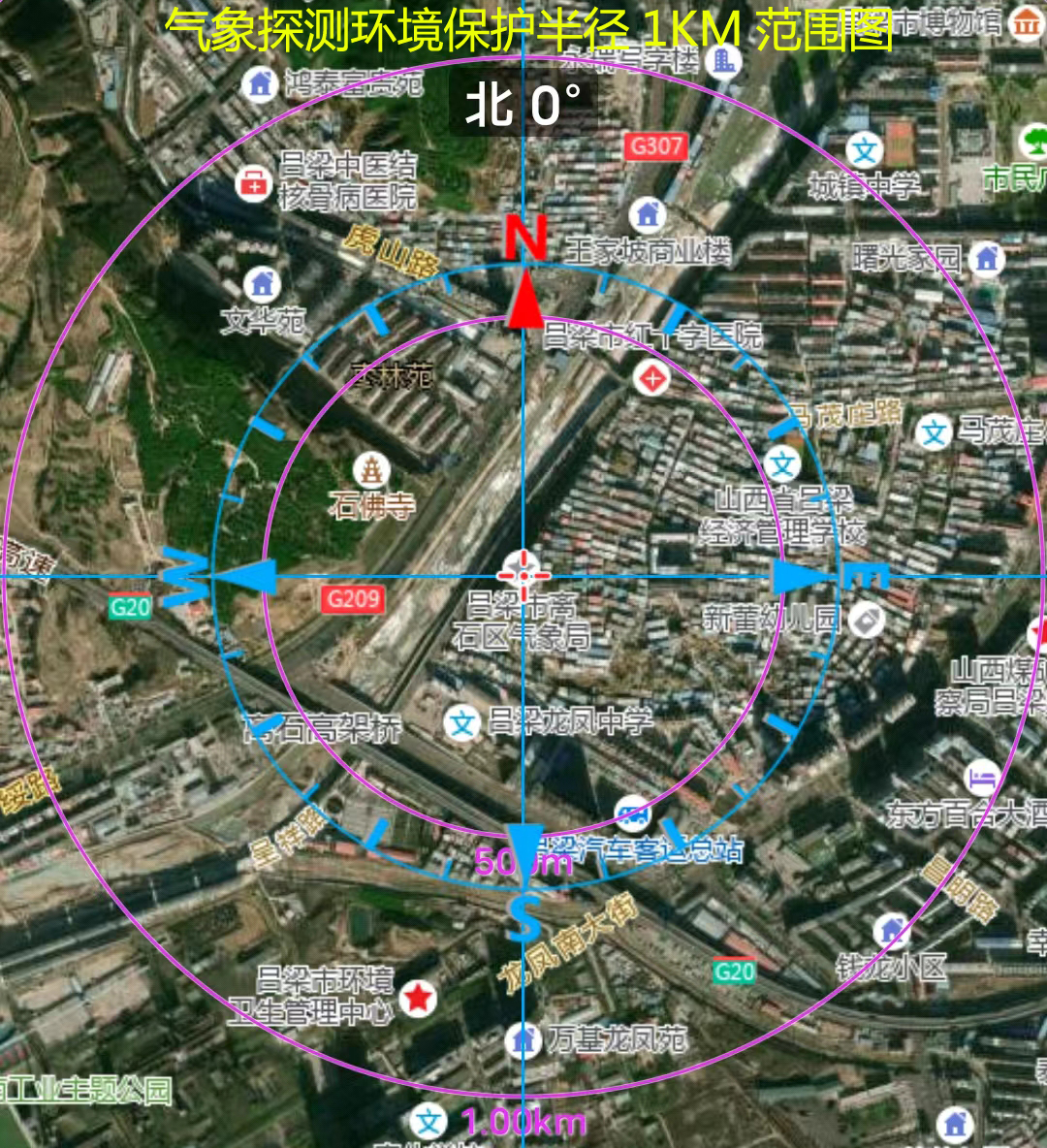 离石区国家基本气象站气象探测环境保护半径1KM范围图