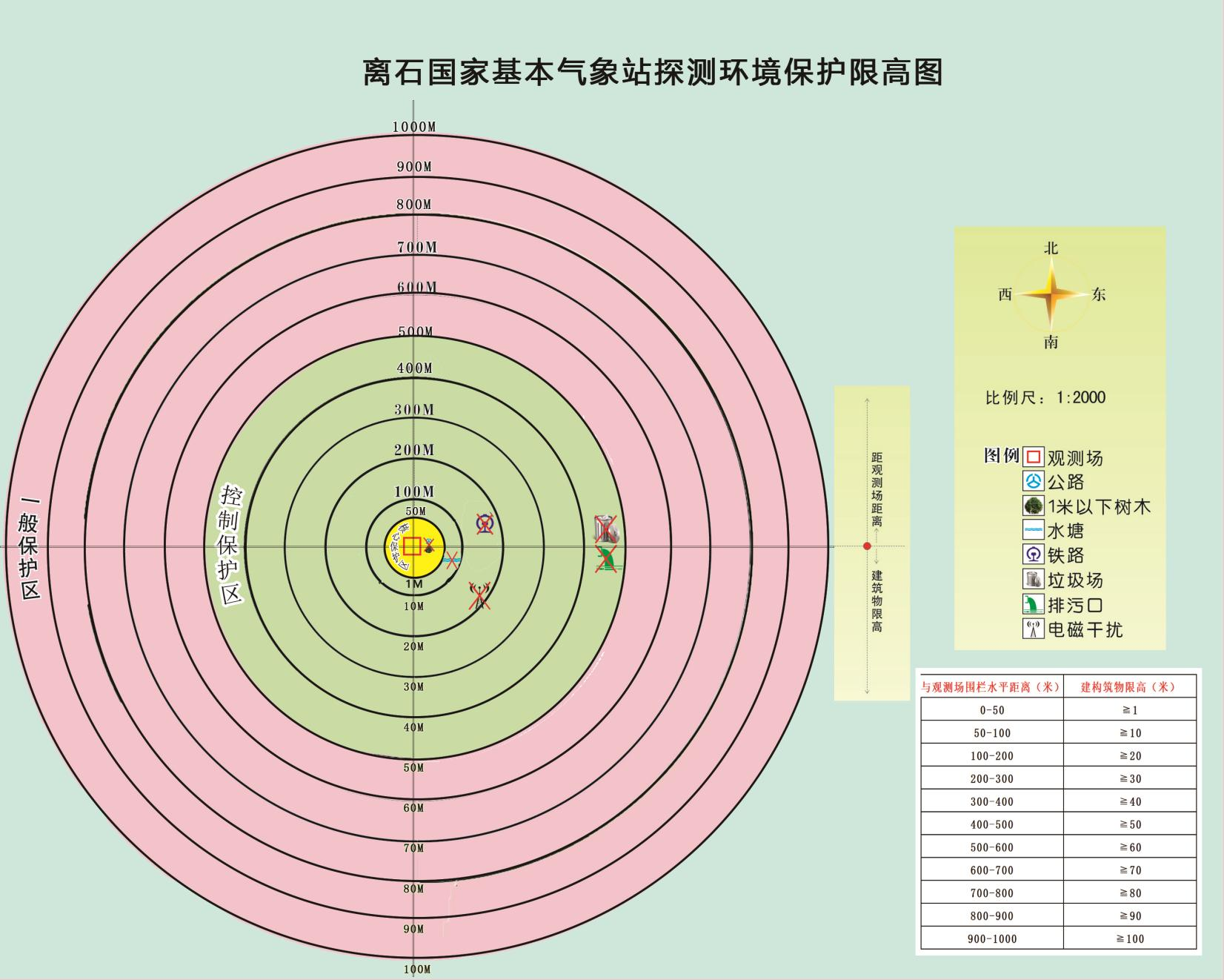 (三)为保护离石国家基本气象观测站探测环境创造有利条件,同时又要满足城市经济社会发展、改善人民生活和工作环境的需要,使气象探测环境保护和城市建设协调发展。