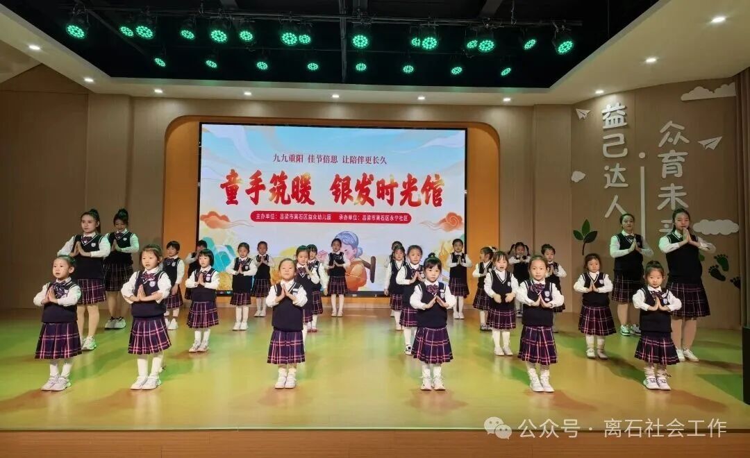 永宁社区携手离石区益众幼儿园开展“登高赏秋迎重阳 敬老爱老传美德”文艺汇演活动,让孩子们也能了解重阳节的由来、习俗,理解“敬老爱老”的文化内涵,促进孩子与老人互动,积极建设“一老一小”友好社区。