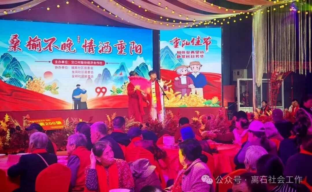 城南社区、龙凤社区、呈祥社区与交口股份经济合作社共同举办“桑榆不晚,情洒重阳”重阳节敬老活动。丰富的节目营造出欢乐祥和的节日氛围,为社区60岁以上老人送上了一份温馨而难忘的节日礼物。