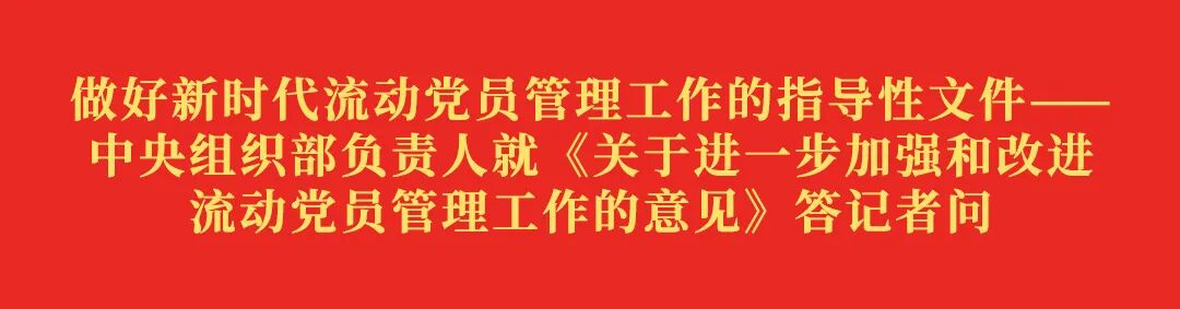 近日,中共中央办公厅印发了《关于进一步加强和改进流动党员管理工作的意见》(以下简称《意见》)。日前,中央组织部负责人就《意见》制定和贯彻实施等问题回答了记者提问。