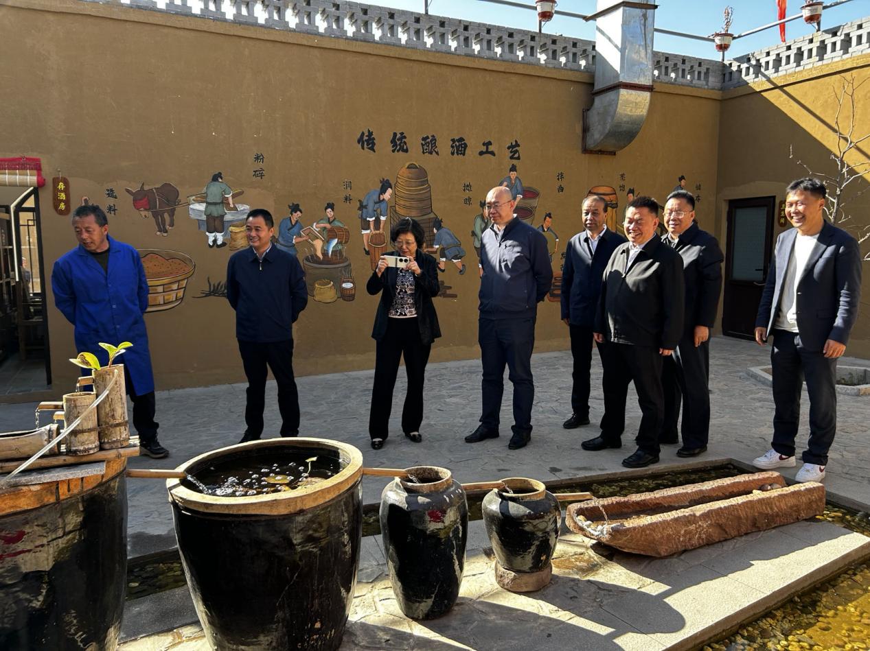 来到王营庄乡村振兴示范区科创研学小镇小吃街和酒、醋作坊及光影展、法治教育基地、花卉基地、稻渔种养、循环水养殖等项目一线进行观摩。