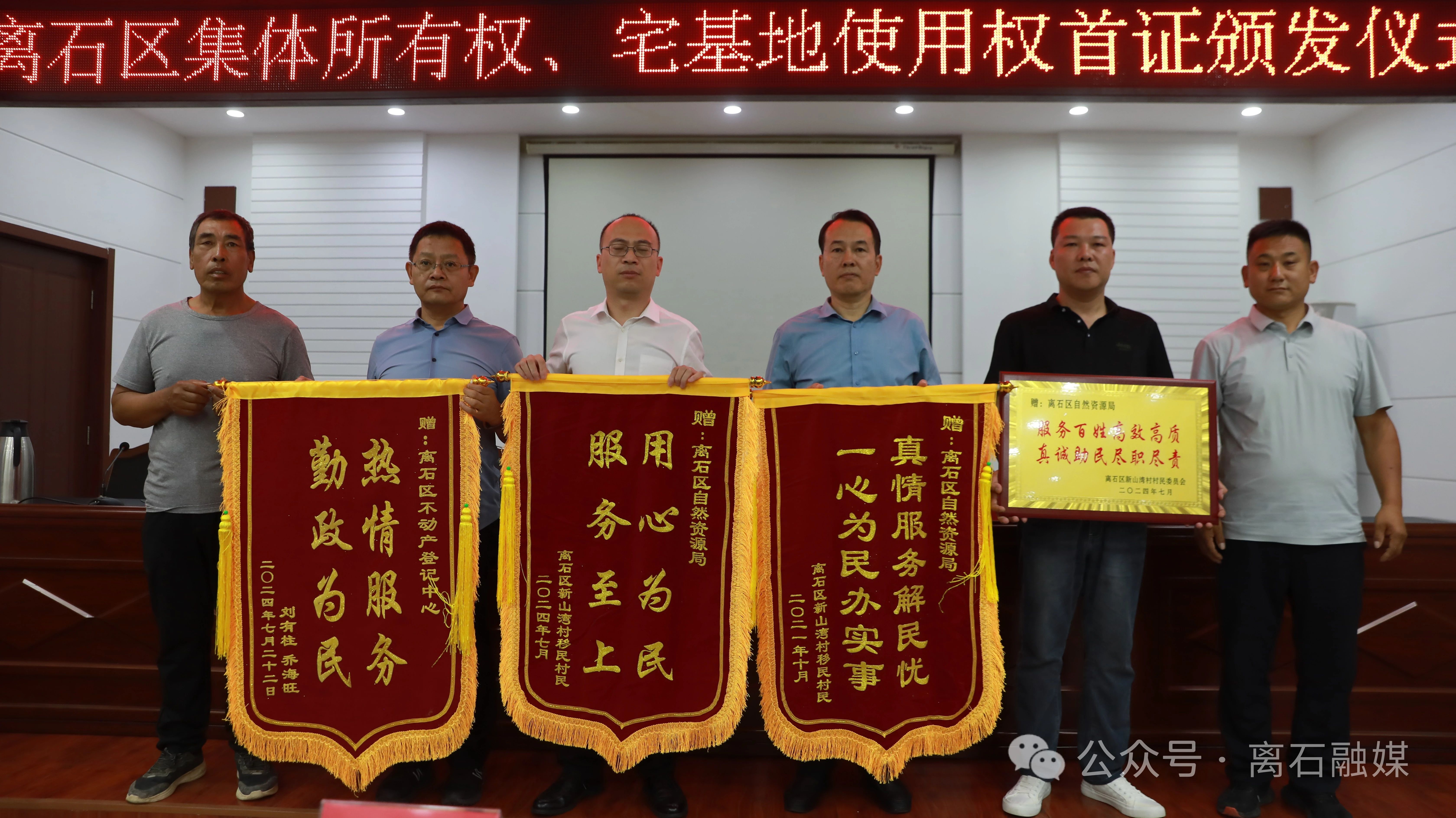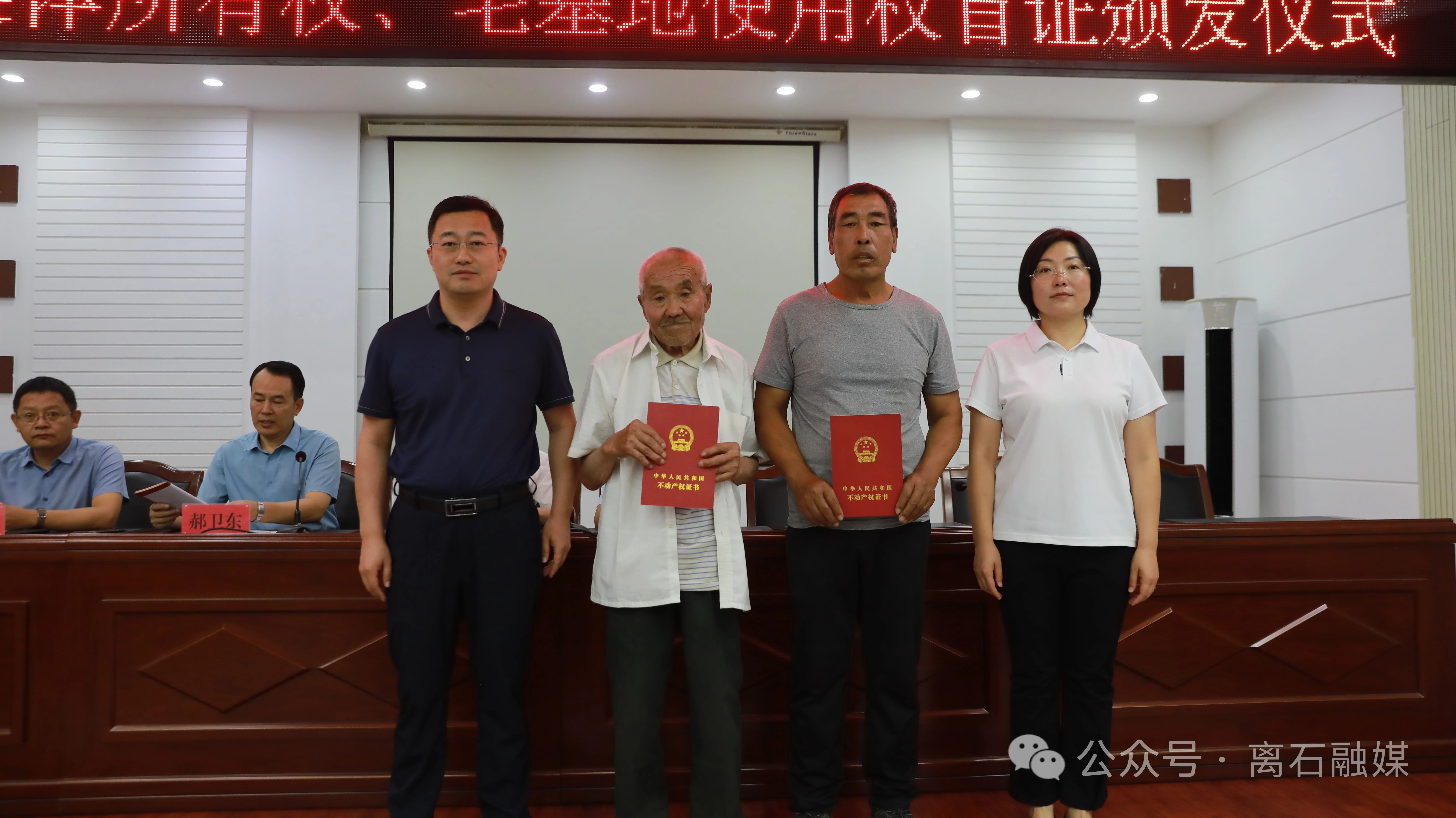 7月24日,离石区自然资源局举行离石区集体所有权、宅基地使用权首证颁发仪式,现场为离石区信义镇、吴城镇、枣林乡等十多位村民代表颁发证书。市、区自然资源局以及各乡镇负责同志参加。