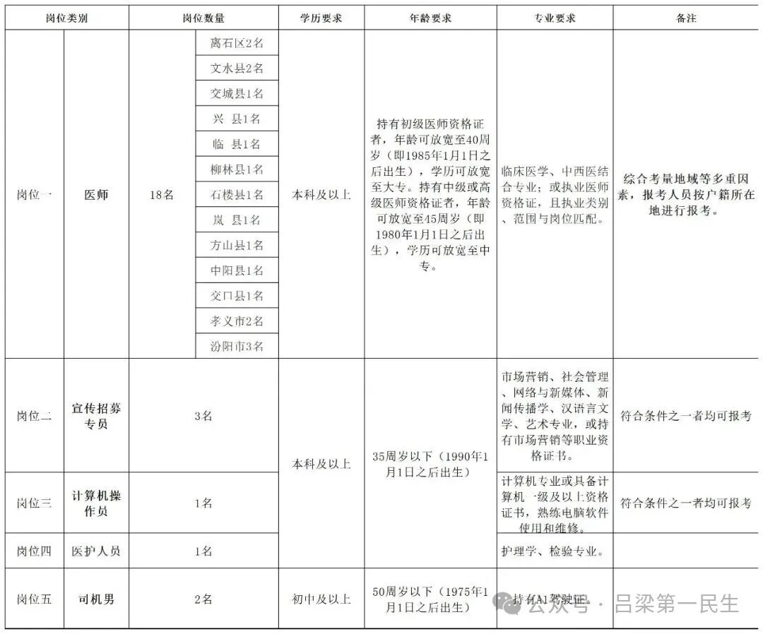 为加强吕梁市中心血站专业技术人才队伍建设,提高吕梁市中心血站业务水平和服务质量,保障全市人民的血液健康,山西鑫智远人力资源有限责任公司现公开招聘吕梁市中心血站专业技术人员25名,为吕梁市中心血站提供专业技术力量。为确保招聘工作顺利进行,现将招聘事项公告如下: