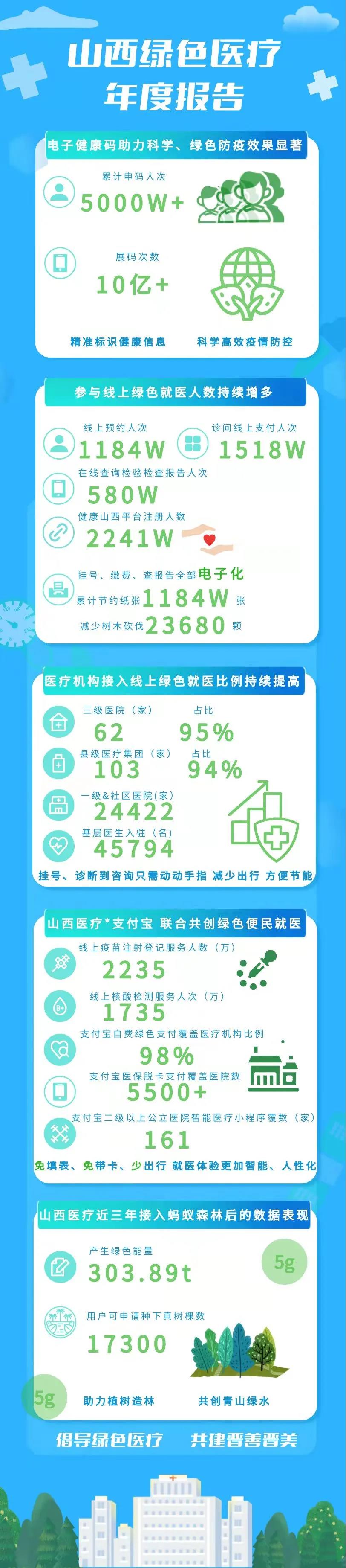 此次会议上,还发布了近年来山西在医疗数字化方面的亮眼“成绩单“。山西各地越来越多的医院接入智能医疗小程序,市民在就诊时,候诊、检查、排队叫号、查阅报告等服务均可通过手机完成,支付宝首页即可查看相关就医信息。以山西省儿童医院为例,家长带患儿就医不仅可以提前预约挂号,还能查询费用清单、住院报告,同时只需激活电子医保码,就能通过手机直接实现医保结算付款。