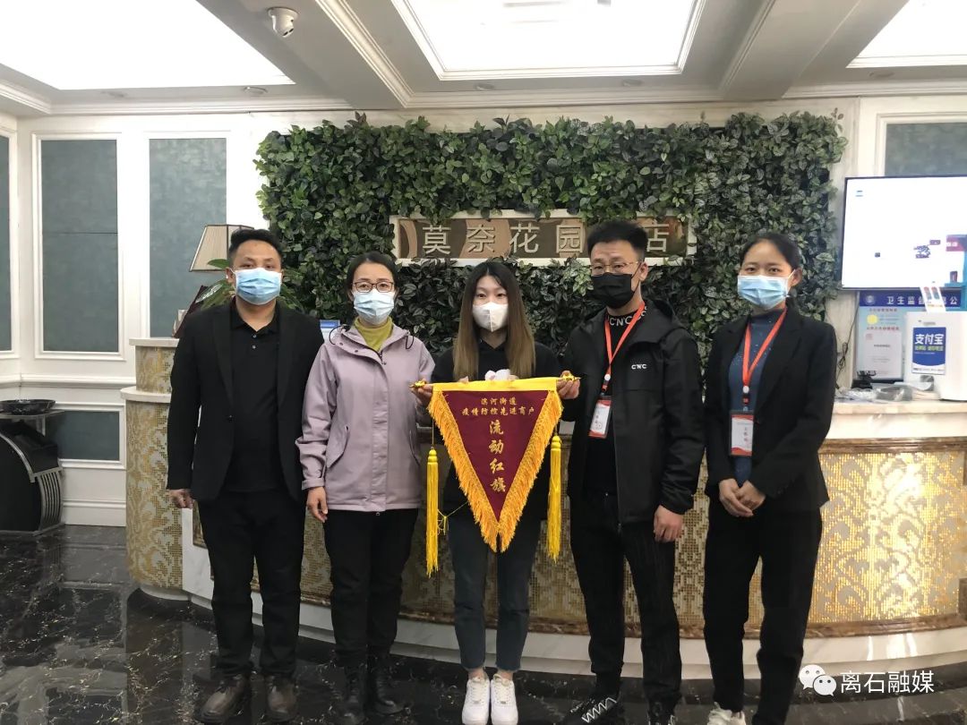 “很高兴社区给我们颁发了流动红旗,这是对我们配合疫情防控工作的激励,我们会继续坚持做好酒店防疫,以实际行动支持社区工作,为全区疫情防控工作贡献自己一份力量。”领到流动红旗的博瑞广告负责人郭赵拴高兴地说到。