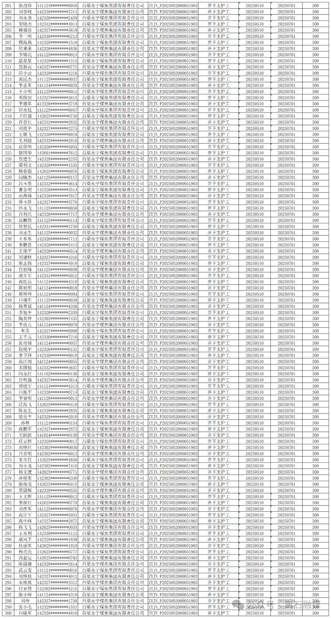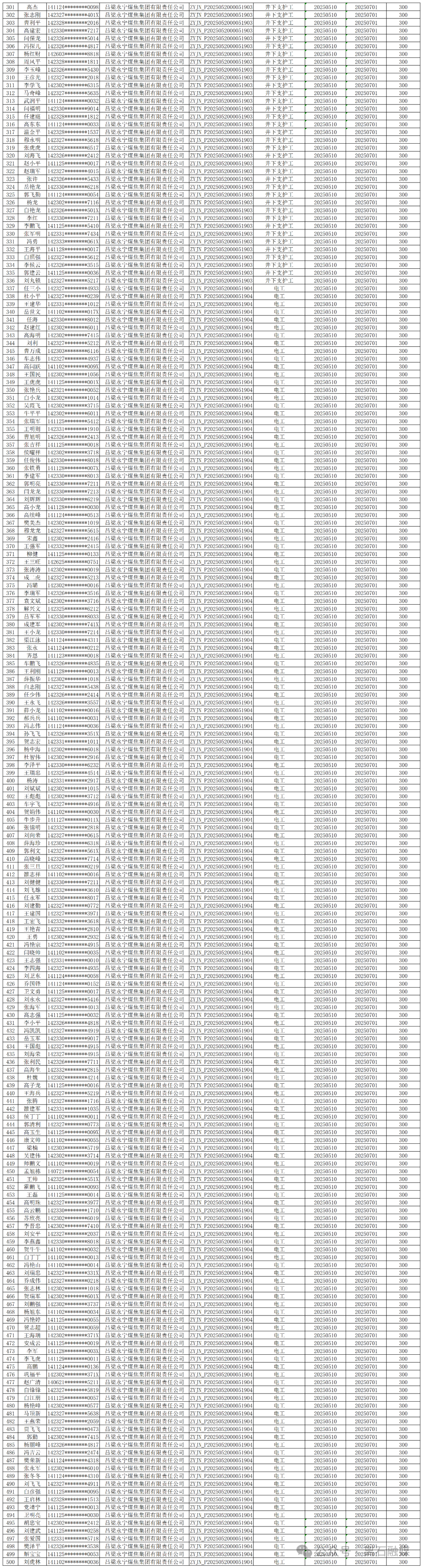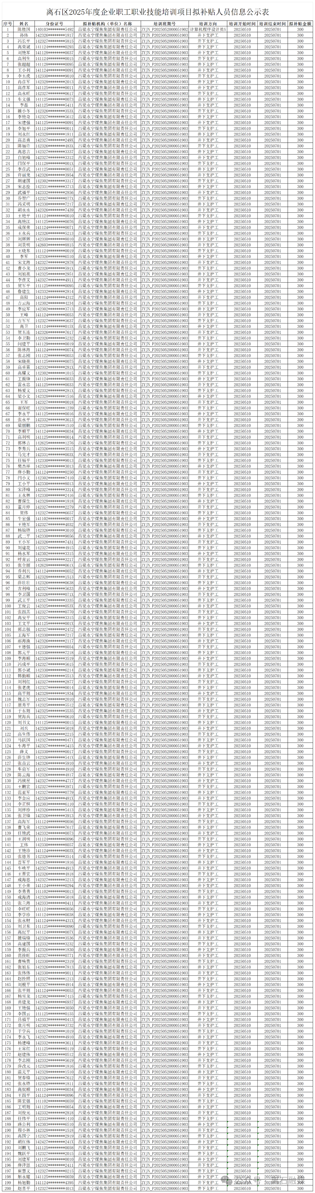 附件:离石区2025年度企业职工职业技能培训项目补贴人员信息公示表
