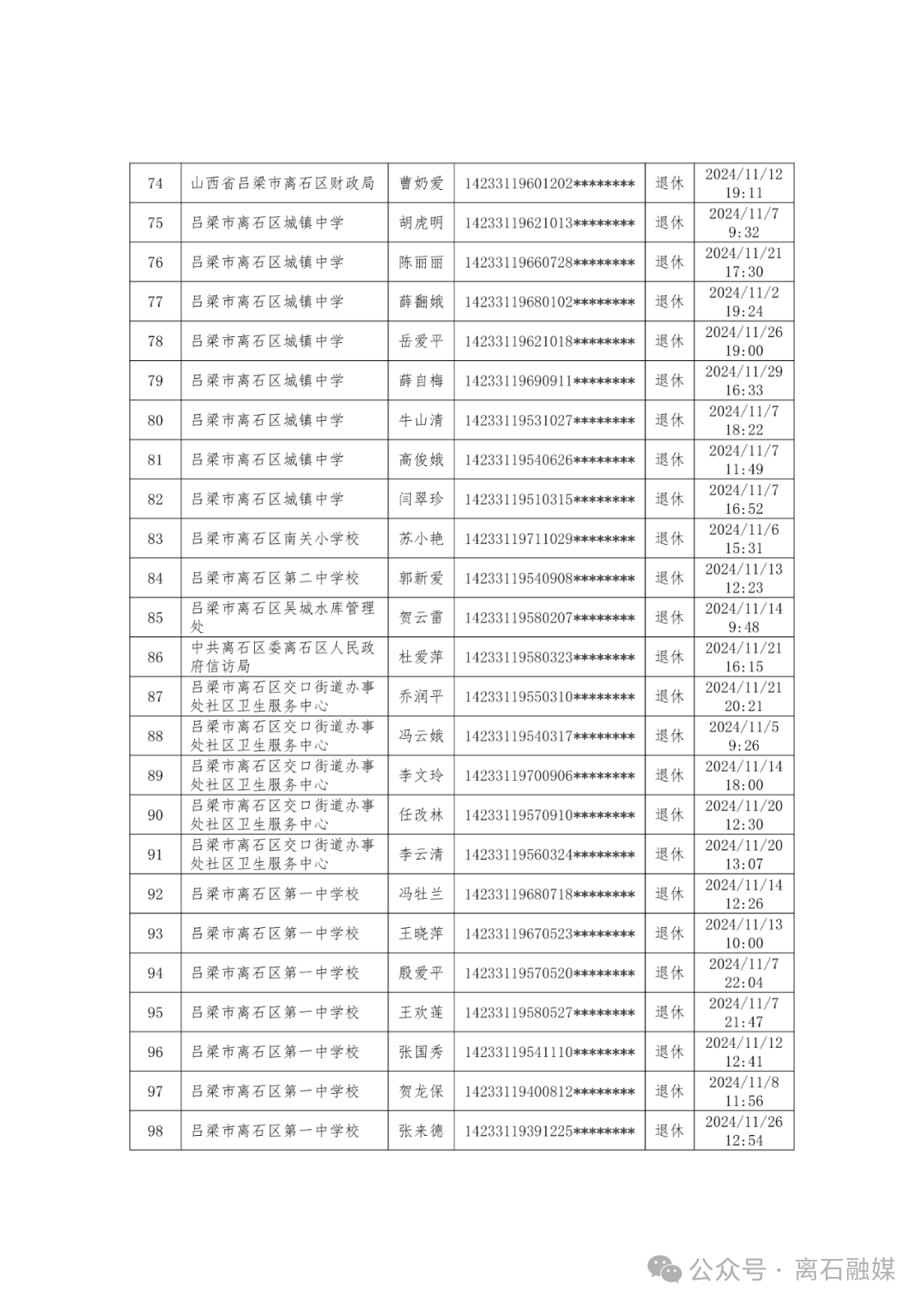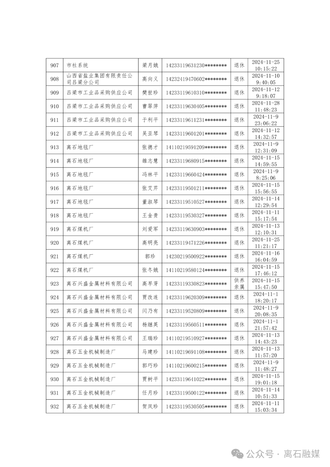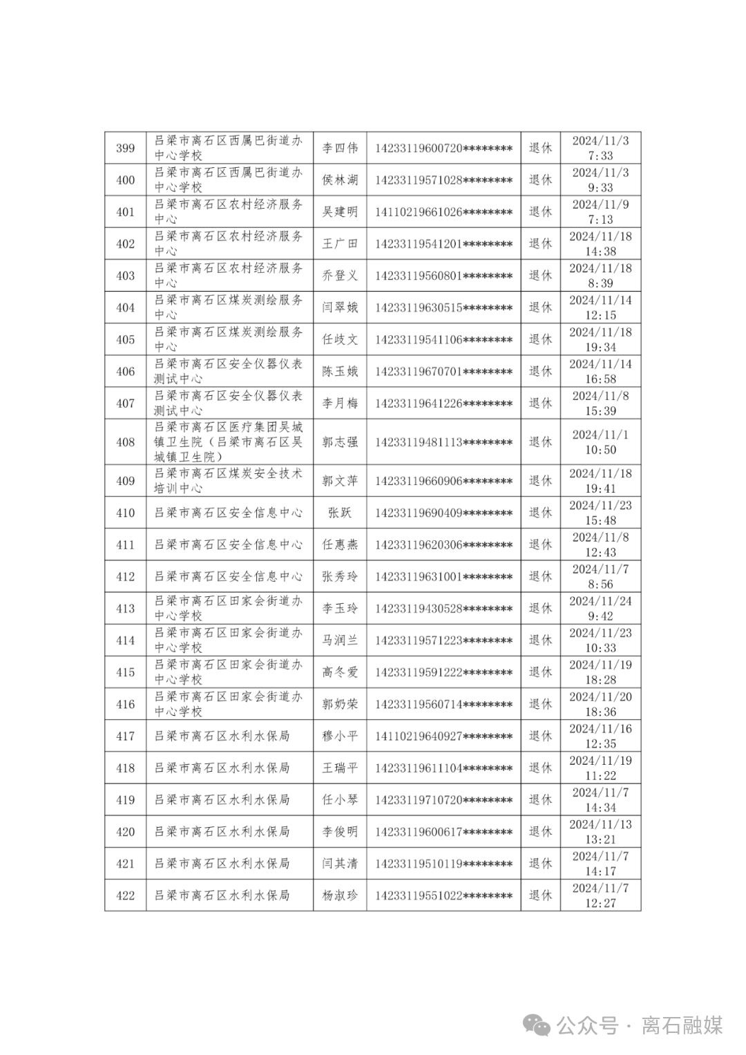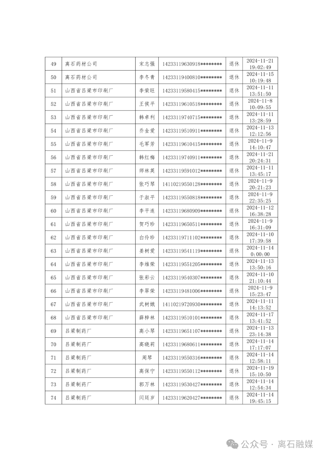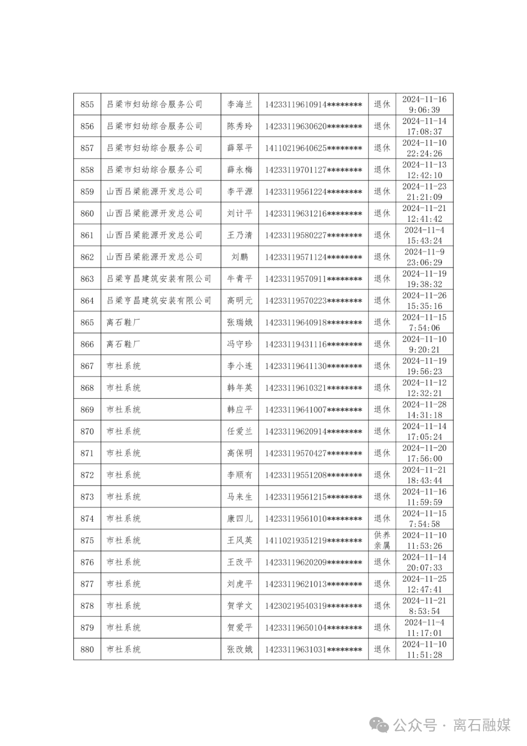 吕梁市离石区社会保险中心关于养老保险待遇领取资格认证的公告(2025年度第十批)