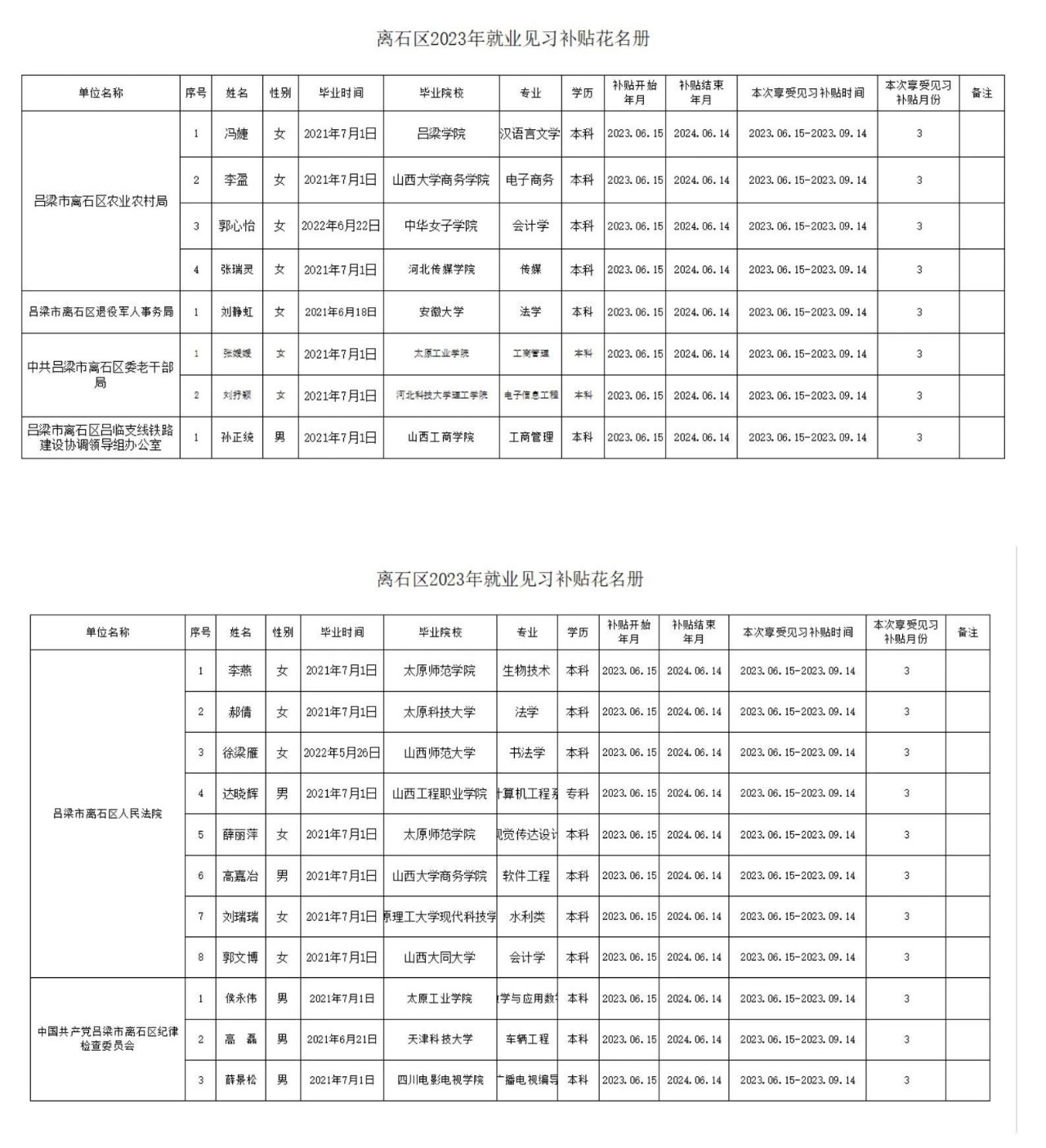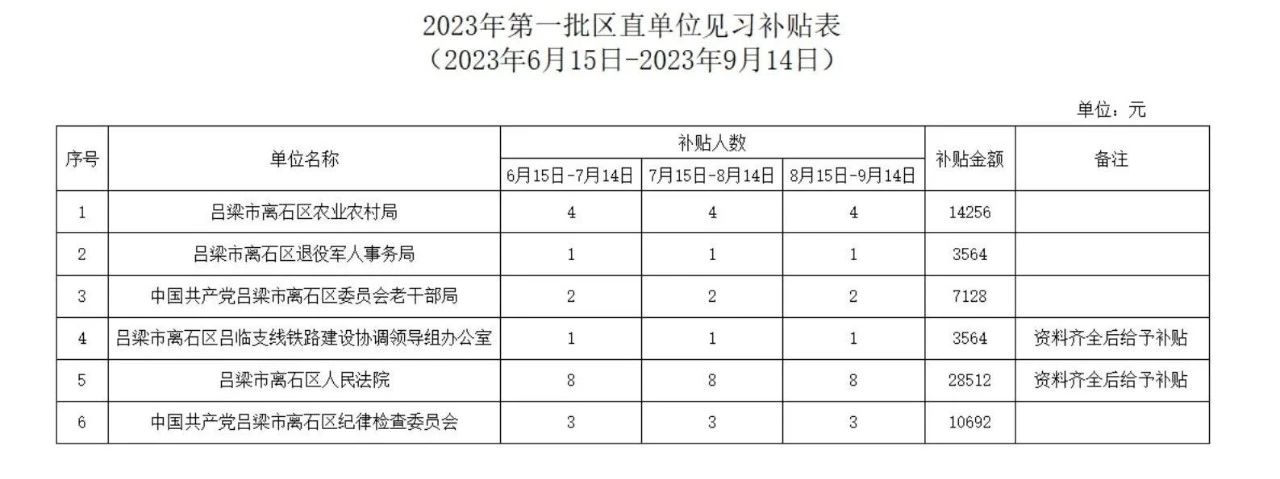 1.2023年第一批6月15日--9月14日区直单位就业见习补贴表
