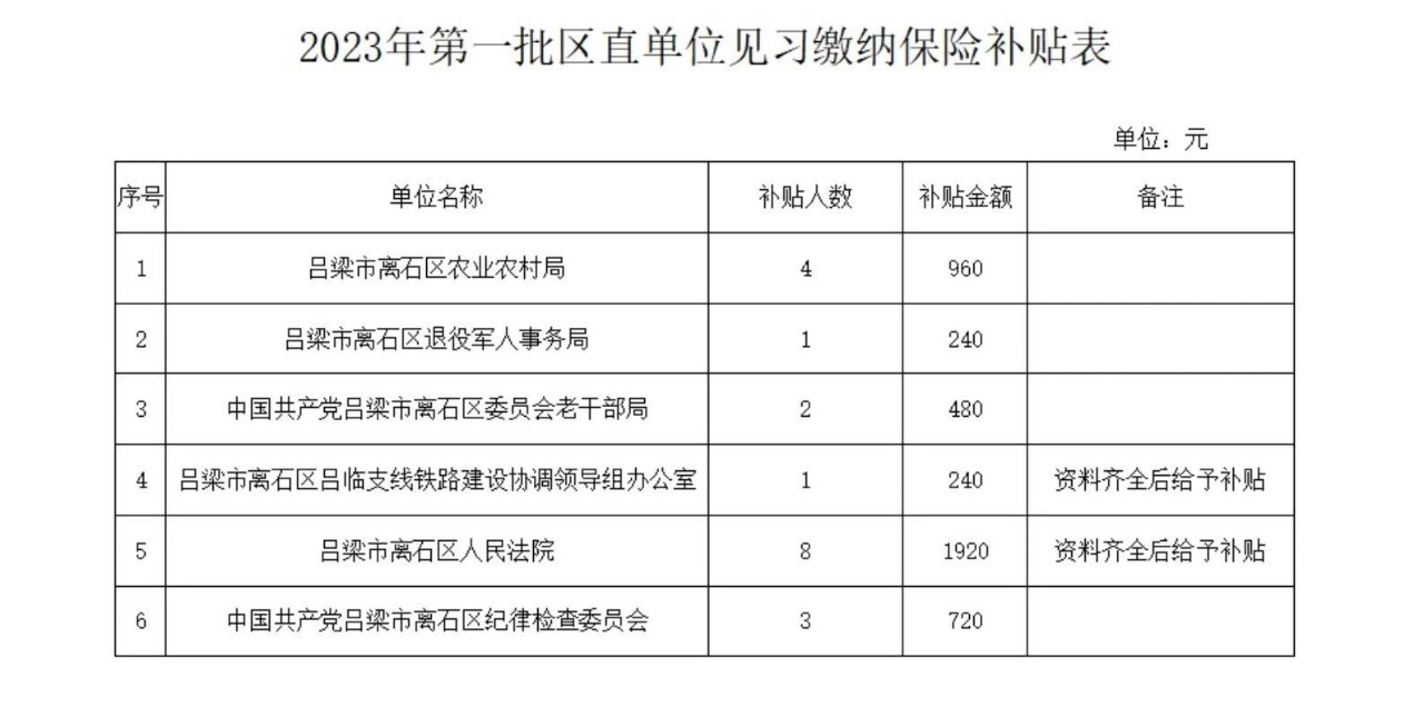 3.2023年第一批区直单位就业见习缴纳保险补贴表