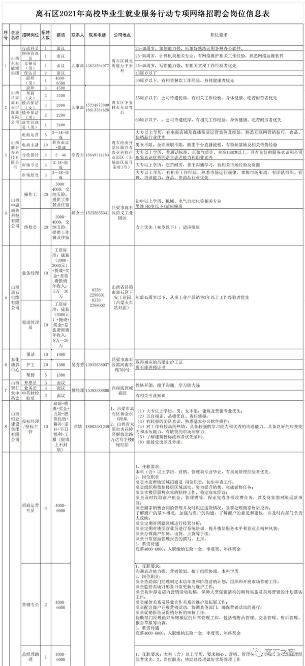 就业是最大民生,高校毕业生就业更是重中之重。为更好促进高校毕业生市场化社会化就业,离石区人力资源和社会保障局将于7月到8月开展离石区2021年高校毕业生就业服务行动网络招聘会,以应往届有就业意愿的离校未就业高校毕业生为主,同时面向各类社会求职者,与用人单位搭建高效便捷的对接渠道和多样化的就业创业服务。