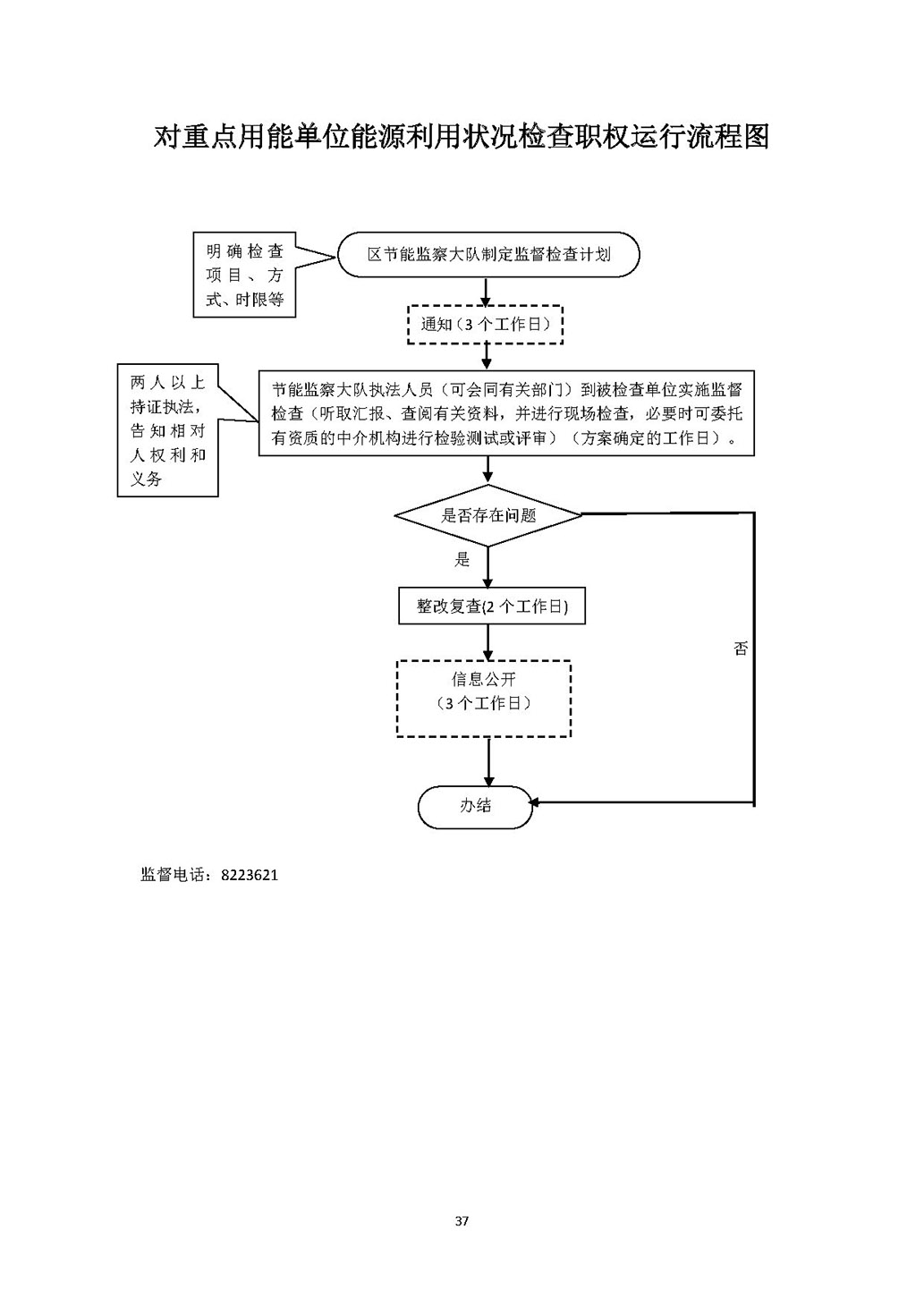 1、进入现场责任:出示执法证件,告知被检查对象权利和义务; 2、监督检查责任:认真填写重点用能单位能源利用状况检查记录;对存在问题进行取证; 3、出具意见责任:对重点用能单位能源利用状况检查结果进行准确定性、提出恰当意见; 4、送达责任:及时送达重点用能单位能源利用状况检查意见给当事人; 5、事后监管责任:开展定期或不定期检查; 6、其他法律法规规章文件规定应履行的责任。 |