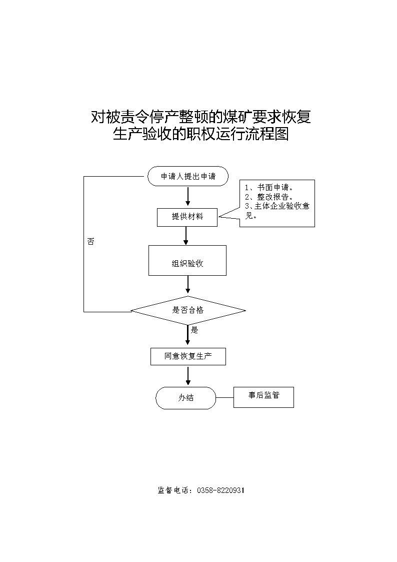 | 其他类 | 77671572-4-QT-0002 | 对被责令停产整顿的煤矿要求恢复生产的验收 | 【行政法规】 《国务院关于预防煤矿生产安全事故的特别规定》(国务院令第446号) 第十一条第二款 |