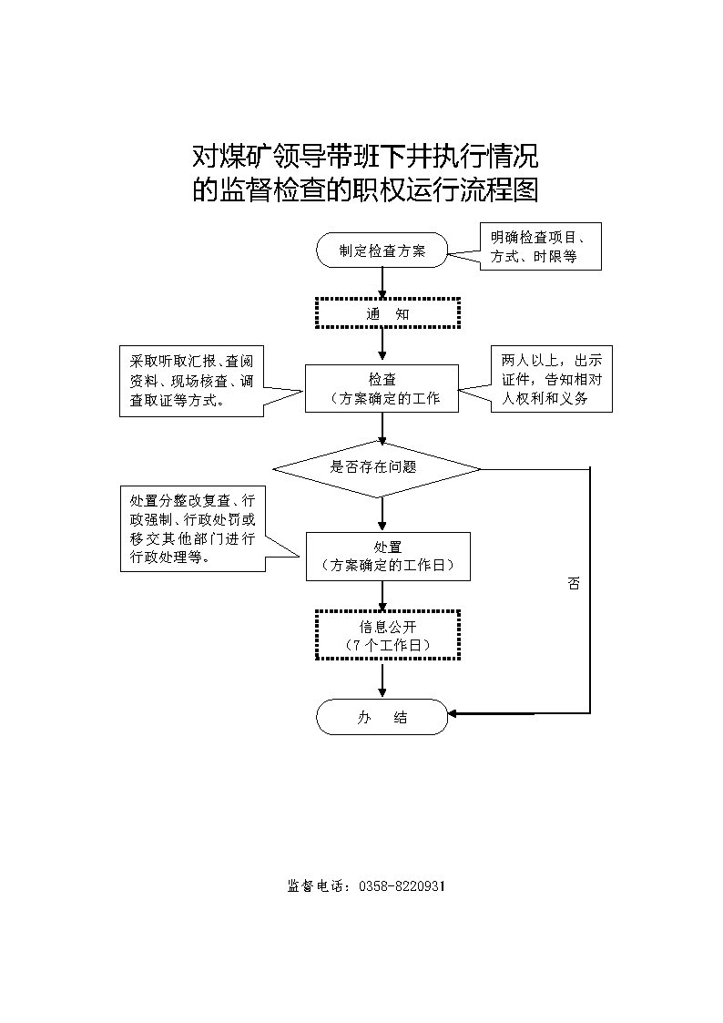 1、现场检查责任:对照规程、规范及相关文件要求,进行现场检查及资料审查; 2、处理决定责任:根据检查发现隐患严重程度,向被检查单位下达现场处理决定,查出的问题及下达的处理决定书现场告知被检查单位和县级管理部门,并签字确认; 3、事后监管责任:跟踪督促被检查单位的隐患整改情况; 4、其他法律法规规章文件规定应履行的责任。 |
