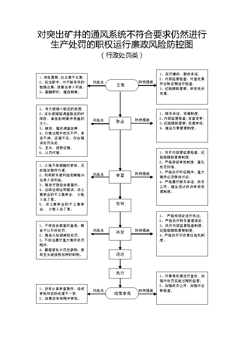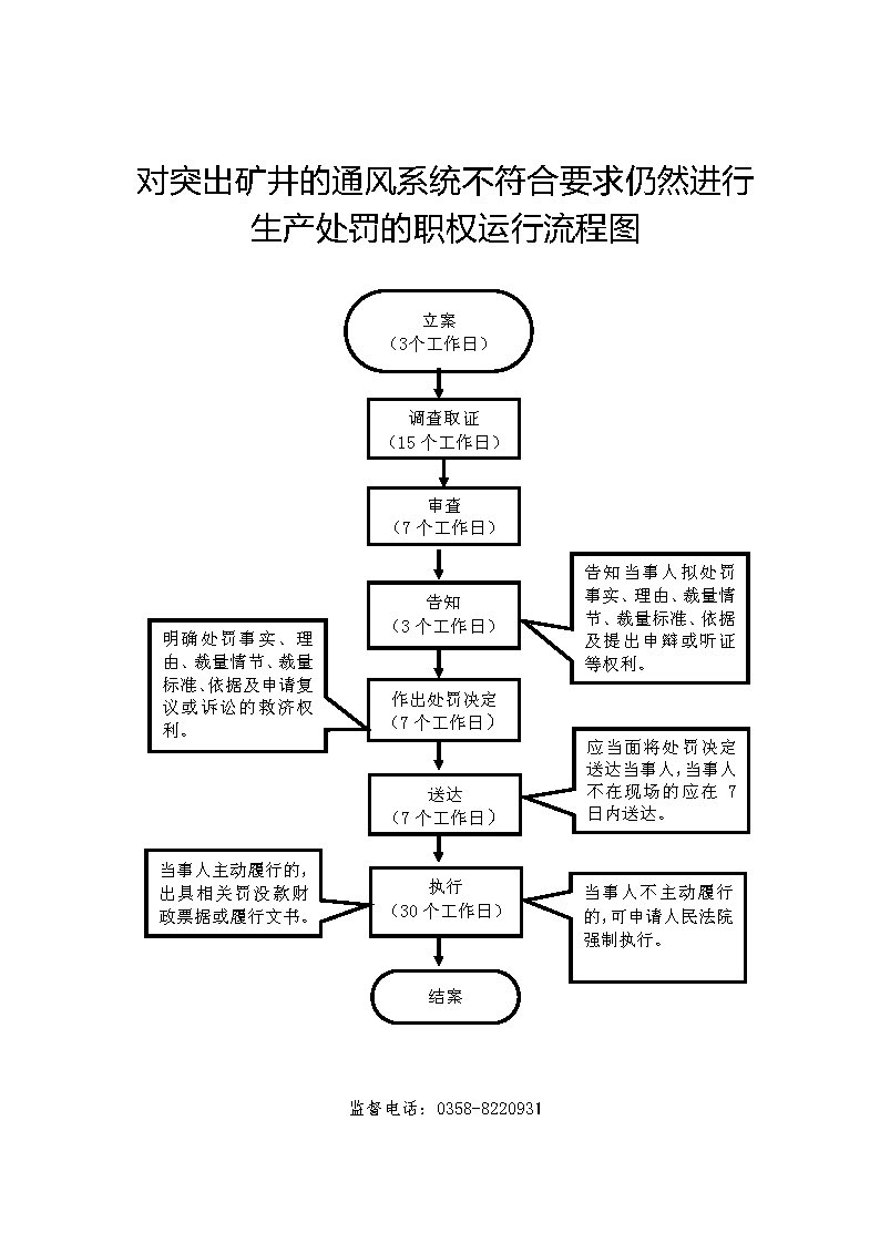 1、立案责任:发现辖区内的煤炭生产经营单位的决策机构、主要负责人或者个人经营的投资人不依照本法规定保证安全生产所必需的资金投入,致使生产经营单位不具备安全生产条件的违法行为(或者下级煤炭管理部门上报或其他机关移送的违法案件等),应及时予以审查,决定是否立案。 2、调查责任:煤炭管理部门对立案的案件,指定专人负责,及时组织调查取证,执法人员应保守有关秘密。 3、审查责任:审理案件调查报告,对案件违法事实、证据、调查取证程序、法律适用、处罚种类和幅度、当事人陈述和申辩理由等方面进行审查,提出处理意见(主要证据不足时,以适当的方式补充调查)。 4、告知责任:作出行政处罚决定前,应制作《行政处罚告知书》送达当事人,告知违法事实及其享有的陈述、申辩等权利。符合听证规定的,制作并送达《行政处罚听证告知书》。 5、决定责任:制作行政处罚决定书,载明行政处罚告知、当事人陈述申辩或者听证情况等内容。 6、送达责任:行政处罚决定书按法律规定的方式送达当事人。 7、执行责任:依照生效的行政处罚决定,监督当事人履行。当事人逾期不履行的,可依法采取加处罚款、申请法院强制执行8、其他法律法规规章文件规定应履行的责任。 |