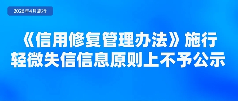 国家发展改革委公布《信用修复管理办法》,自4月1日起施行。其中提出,失信信息按照失信严重程度实行分类管理,原则上划分为“轻微、一般、严重”三类,按照过罚相当原则,分别设置不同的公示期限,公示期限自司法、行政公务文书认定之日起开始计算。轻微失信信息原则上不予公示;行业主管部门认为确有必要公示的,公示期最长不超过3个月,且法定责任履行完毕即可申请修复。一般失信信息的最短公示期为3个月,最长为1年。严重失信信息的最短公示期为1年,最长为3年。