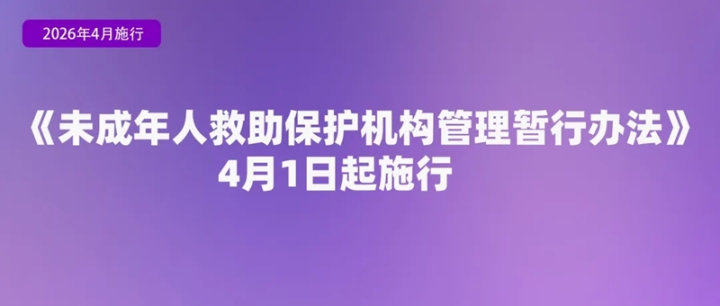 民政部公布《未成年人救助保护机构管理暂行办法》,自2026年4月1日起施行。《办法》明确,未成年人救助保护机构应当收留、抚养由民政部门依法临时监护的未成年人,并按规定提供健康检查、寻亲服务、生活照料、基本医疗、教育服务、安全保护、心理健康服务等。