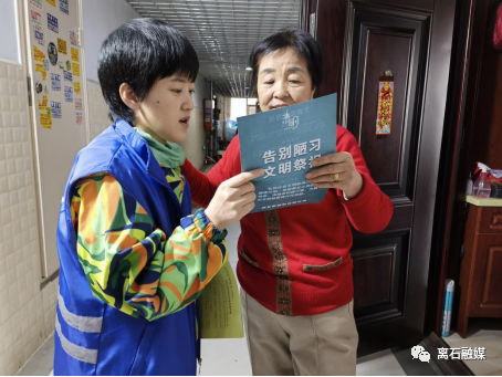 活动中,网格员入户向辖区居民发放《告别陋习 文明祭祀》倡议书、倡导广大居民弘扬社会文明新风,争做健康文明、低碳祭祀的倡导者、传播者和践行者,为城市文明程度提升做贡献;在居民群里发动居民在中国文明网上用手机识别二维码点击参与生成自己的海报向英烈致敬;组织社区志愿着宣传文明祭祀方法,号召党员干部发挥模范带头作用,厚养薄葬,文明祭祀,树立良好家风,由实地实物祭扫转移到对逝者的精神文化传承上来。号召广大居民在清明节祭祀时不燃放鞭炮、焚香烧纸、避免火灾,倡导居民们用家庭悼念、祭酒祭祀、鲜花祭祀、网上祭祀、植树祭祀、撮土追思、音乐追思、往生回忆等健康时尚的方式祭奠、缅怀亲人。