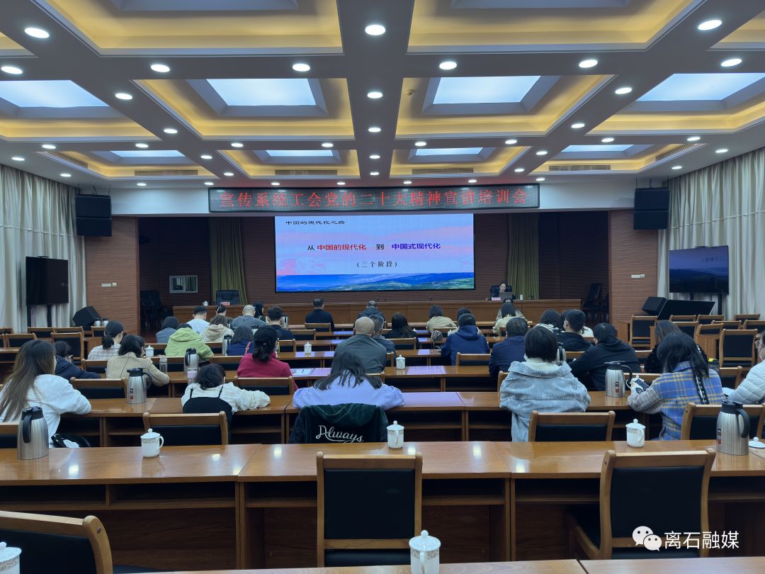4月3日,宣传系统工会举行党的二十大精神宣讲培训会,邀请吕梁市宣讲团成员,离石区委党校讲师高秀莲作了题为《认真学习贯彻党的二十大精神 以中国式现代化全面推进中华民族伟大复兴》的专题培训。