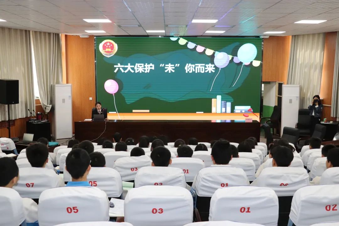 遇到校园欺凌应该怎么办?哪些行为可能构成违法犯罪?未检干警徐佩文以“六大保护”为主体架构,重点从侵害未成年人强制报告制度、学生欺凌防控制度及措施、网络沉迷预防、私密信息保护等八个方面,通过穿插真实案例,以深入浅出、通俗易懂的方式为学生解读《未成年人保护法》。通过讲解,进一步告诫同学们要学法守法用法,做到“不欺凌、不受欺”,让学生了解在家庭、社会、学校中所享有的权利,引导学生增强法治观念和法律意识,遭遇侵害时要用法律来保护自己。
