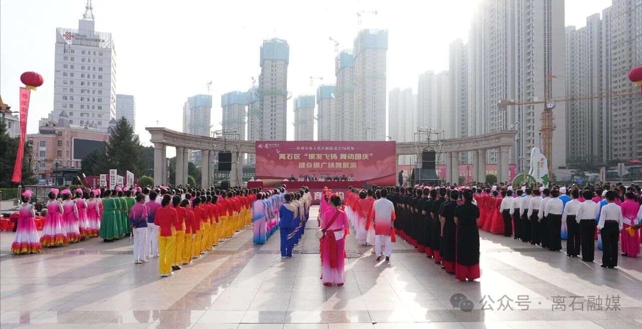 9月29日,为庆祝中华人民共和国成立76周年,离石区“银发飞扬 舞动国庆”健身操广场舞展演活动在世纪广场精彩上演,老年人们以昂扬的舞姿、饱满的热情,奏响了“老有所乐 老有所为”的时代乐章,为国庆佳节献上诚挚祝福。