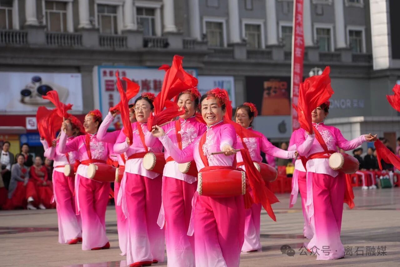 16支健身操、广场舞队伍分别进行了表演。随着欢快的音乐响起,阳光腰鼓队率先登场,队员们身着鲜红演出服,手持彩鼓整齐列队。《爱我中华》的熟悉旋律中,鼓点与舞步精准契合,时而轻快灵动,时而雄浑有力,红色绸带随手臂翻飞如火焰跳动,将对祖国的热爱融入每一个动作,瞬间点燃全场气氛。东方健身舞蹈队带来经典曲目《江山》,她们的舞姿兼具力量与柔美,队形变换间尽显默契,每一个眼神都饱含深情,让观众在视觉享受中感受家国情怀的厚重。区老体协健身秧歌队带来的《桃花红 杏花白》则展现出别样风情。队员们手持彩扇踏歌而舞,舞步融合了传统秧歌的质朴与现代健身操的活力,扇面开合间如繁花绽放,将春日生机与乡土韵味演绎得淋漓尽致,赢得台下阵阵喝彩。