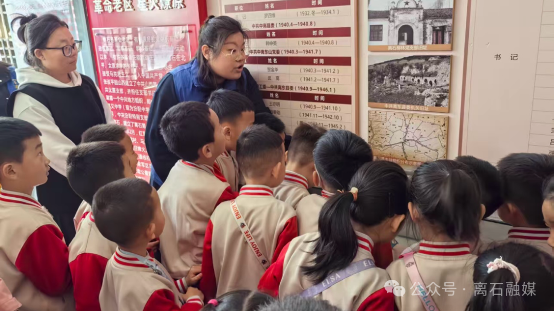 随后,孩子们以班级为单位,在解说员的带领下,依次走进高家沟高级军事会议纪念馆和林迈可·李效黎纪念馆进行参观学习。孩子们紧跟解说员的脚步,认真聆听红色故事,仔细观看馆内的历史图片、文献资料和珍贵实物,一步步解锁红色印记,深入了解革命先辈们浴血奋战的光辉历程,铭记历史人物的英勇事迹,在幼小的心灵中种下爱国、爱党、爱家乡的种子。
