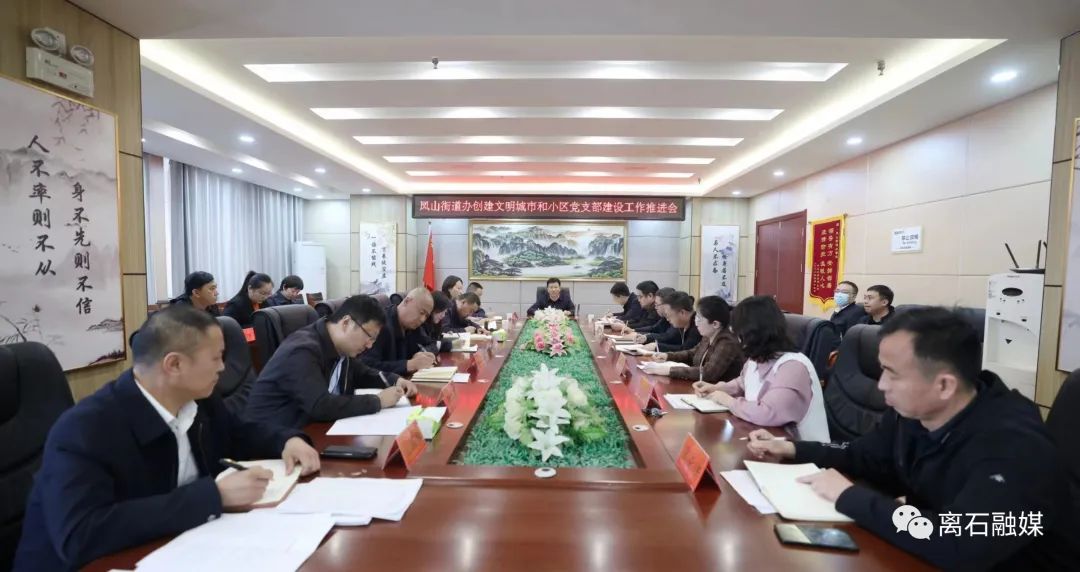 时间已过中午2点。凤山街道办会议室里,小区党支部建设和文明城市创建推进会还在进行中,廉海平书记在和班子成员座谈中边问边记,面对面交流、实打实支招,传导压力、倒逼责任。