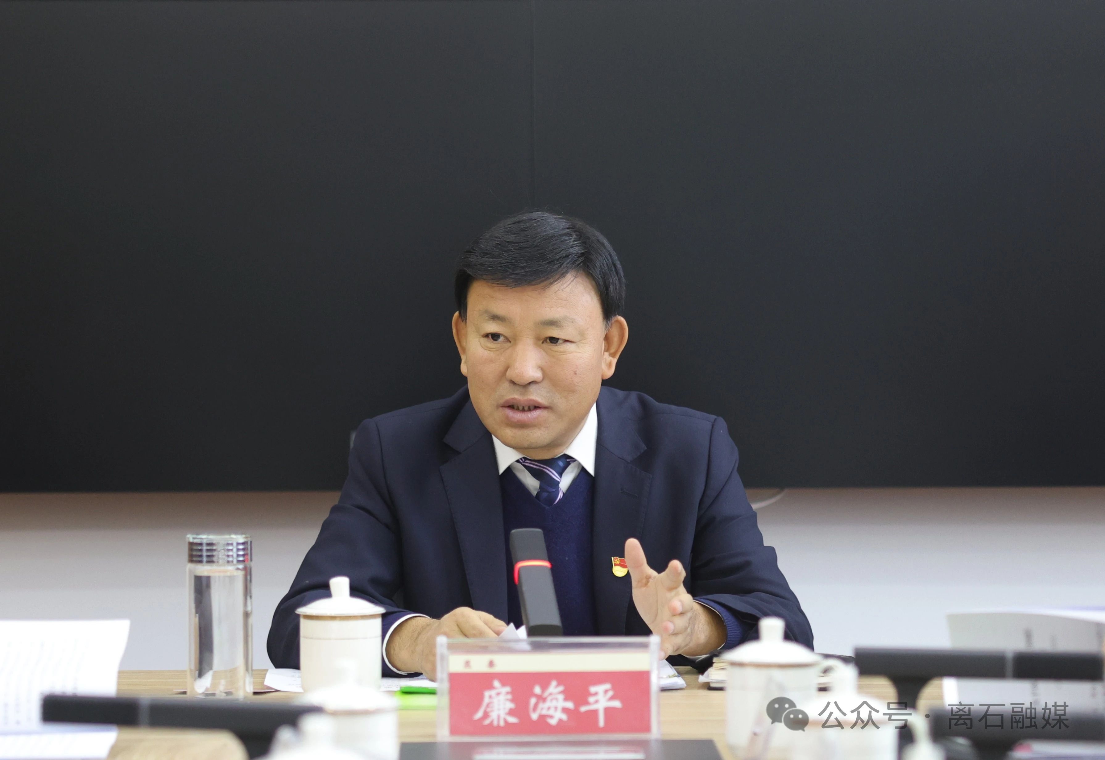 研究讨论《区委六届八次全会常委会工作报告(讨论稿)》和《中共离石区委关于深入学习贯彻党的二十届三中全会精神 进一步全面深化改革的实施意见(讨论稿)》。区委书记廉海平主持会议。