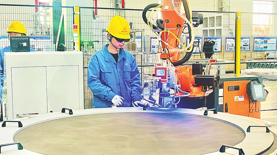 潞安化工机械(集团)有限公司新能源装备分公司,工人正在操作一机双工位镍丝网激光焊接机。 山西经济日报记者 王蕾 摄